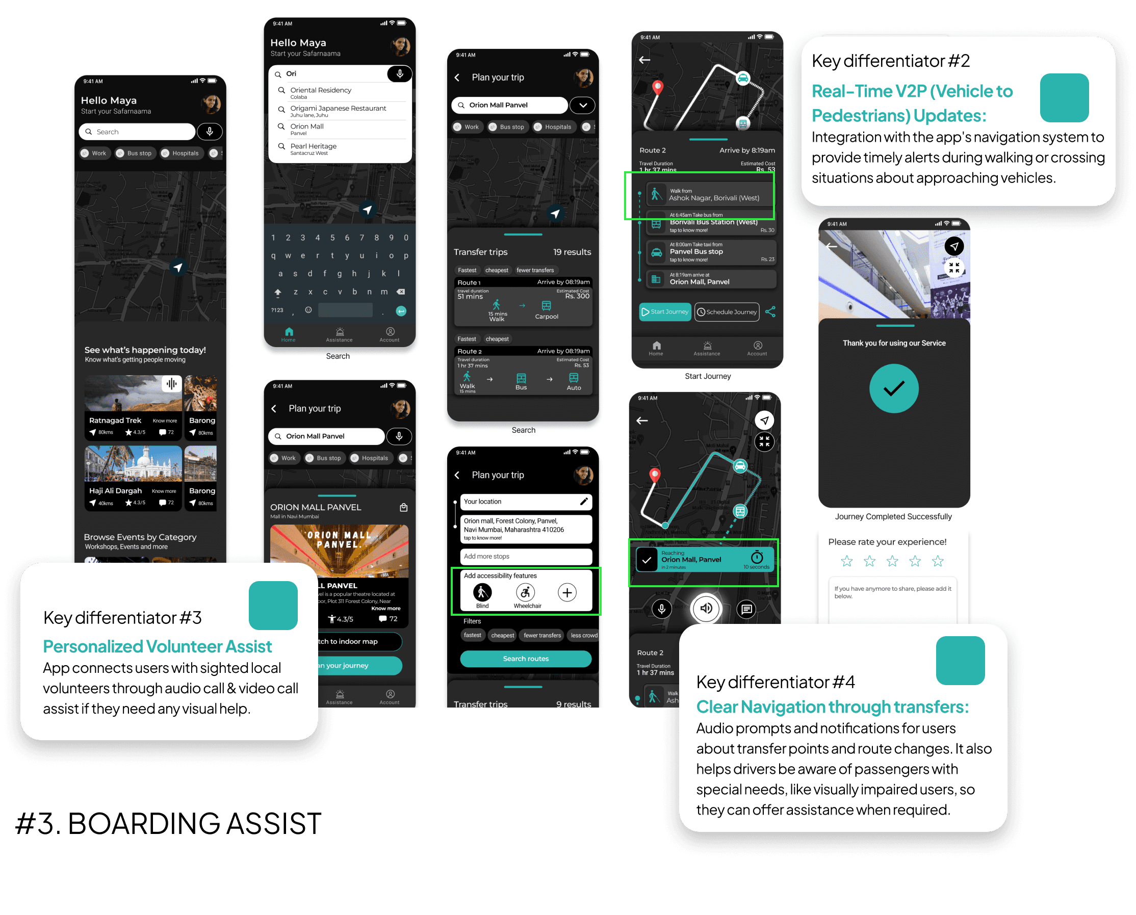 Audio prompts and notifications for users about transfer points and route changes. It also helps drivers be aware of passengers with special needs, like visually impaired users, so they can offer assistance when required.