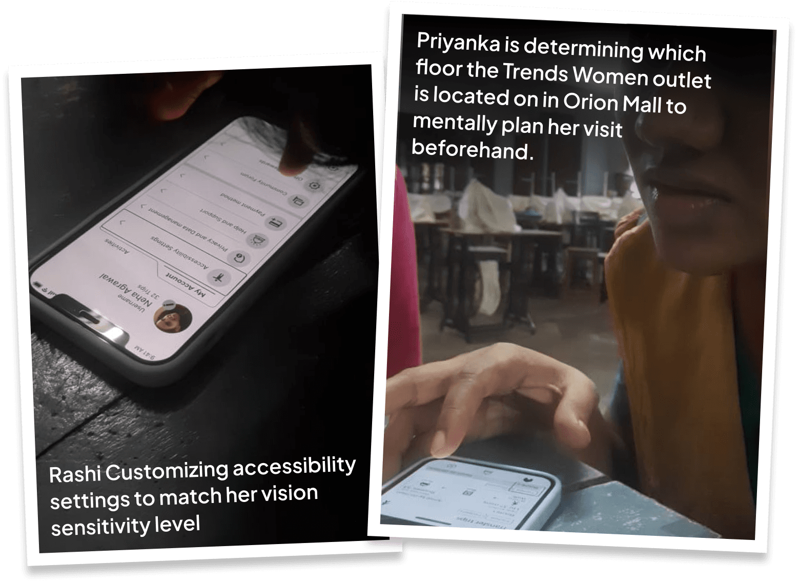 Unavailability of Speaker Audio based interactions such as Audio Search & Talk back feature couldn’t accurately provide user Navigation experience designed for them. At this stage an external prototype was used.